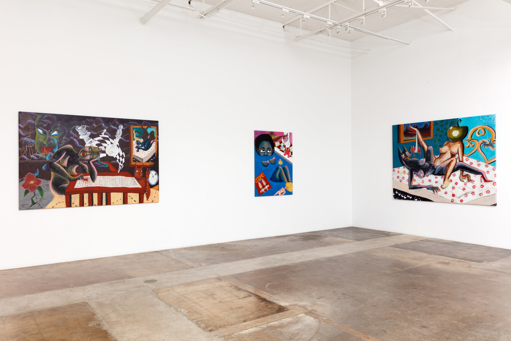Abi Salami’s latest body of work—cheeky, off-kilter, wry—playfully but powerfully rails against the stereotypes that haunt our cliches and norms, the tyrannies and false imperatives of European beauty standards, and the hypocrisies of heterosexual love. Topsy-turvy tableaux expose society’s foibles with sardonic wit. Her rollicking visual riddles place folly where we can see it. In the artist’s loose, gestural compositions, the shock of color and melee of form intentionally disorient the viewer, while humor both lures and diffuses tension—her clever formal means to broach (mis)education.